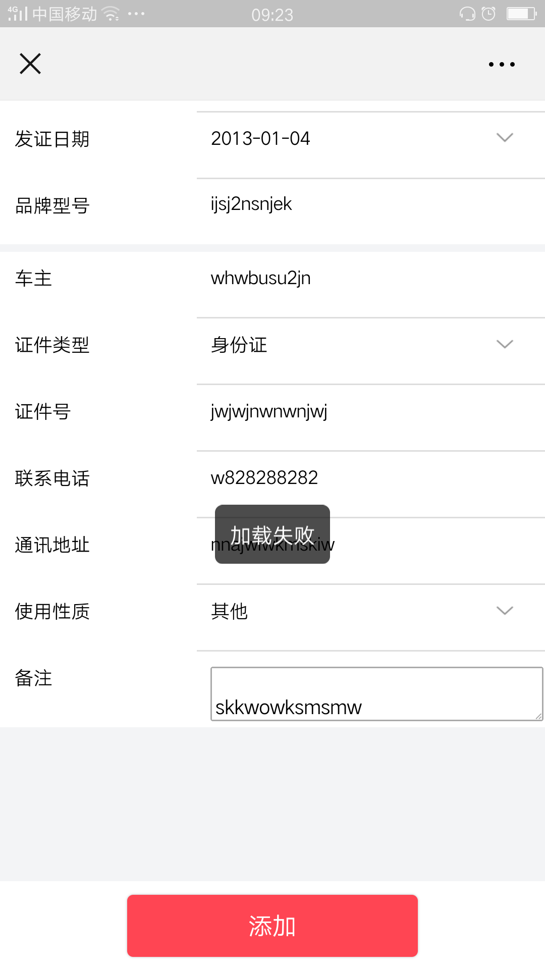 3. 新添车辆时,各字段的长度和格式需要限制,保存时提示失败。见附图
