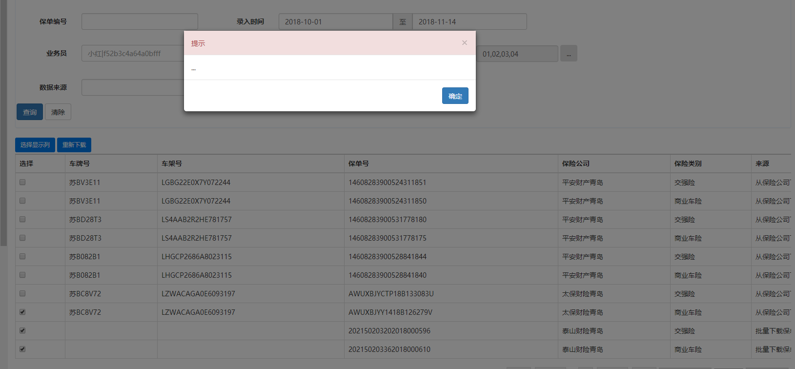 选中下载失败的保单,多次点击重新下载会出现如截图所示问题