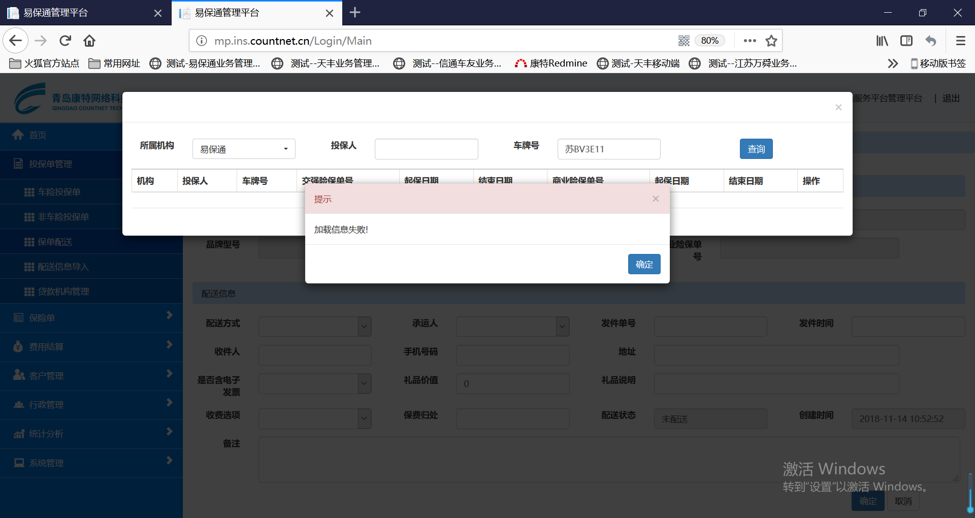 【速成高级版】保单配送,新添选择投保单时,根据投保人、车牌号搜索提示信息加载失败