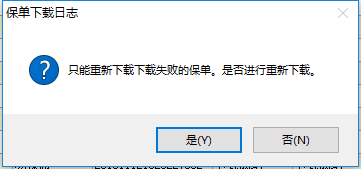不管是下载成功或者下载失败的保单,勾选后进行重新下载,都必须先出现如图所示提示框