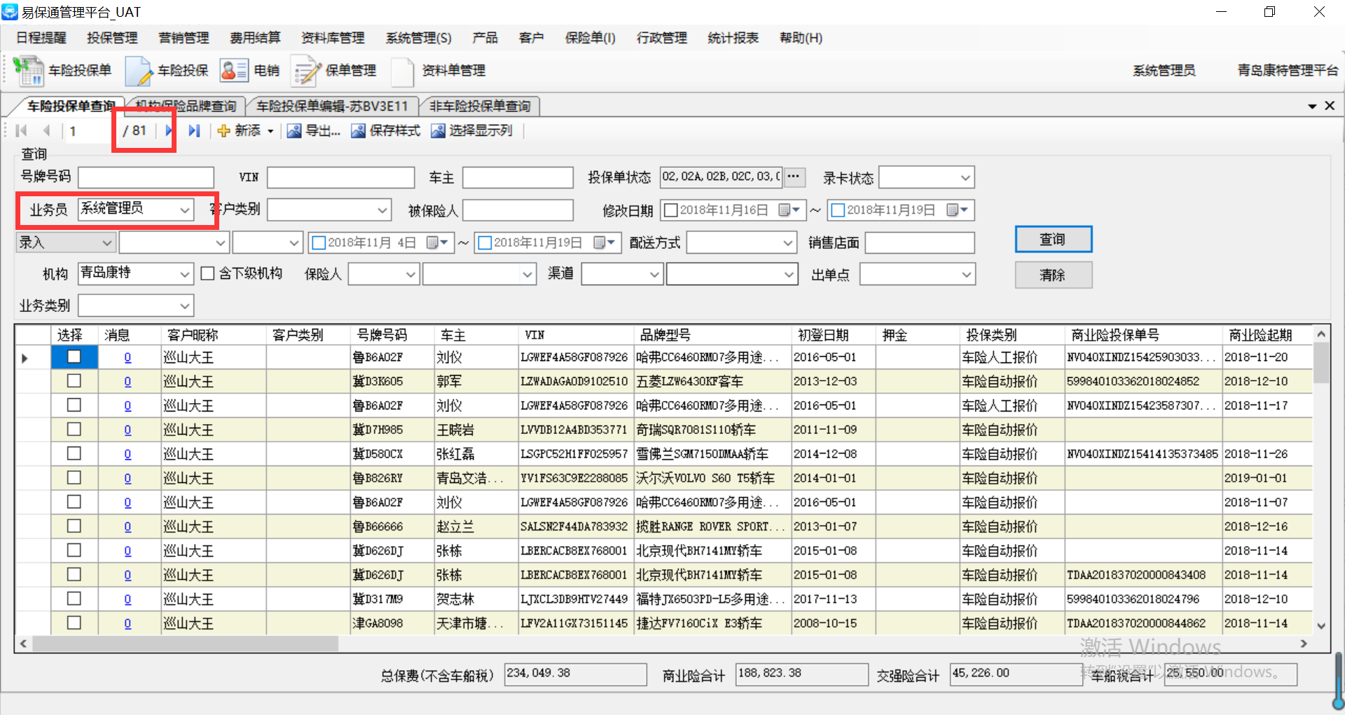 易保通UAT环境,账号:admin@G0000000。车险和非车险的投保单已报价之后的状态(包含已报价)统计见附图,总和为120,微信端只统计了117条