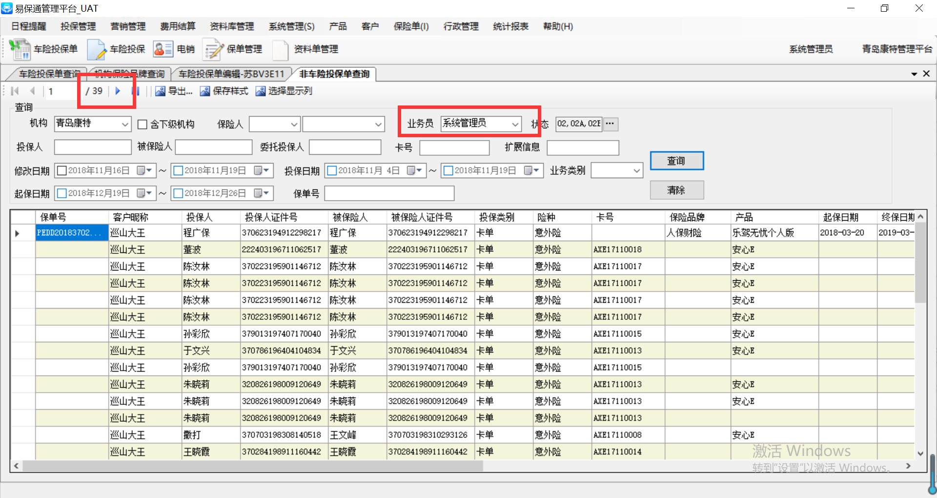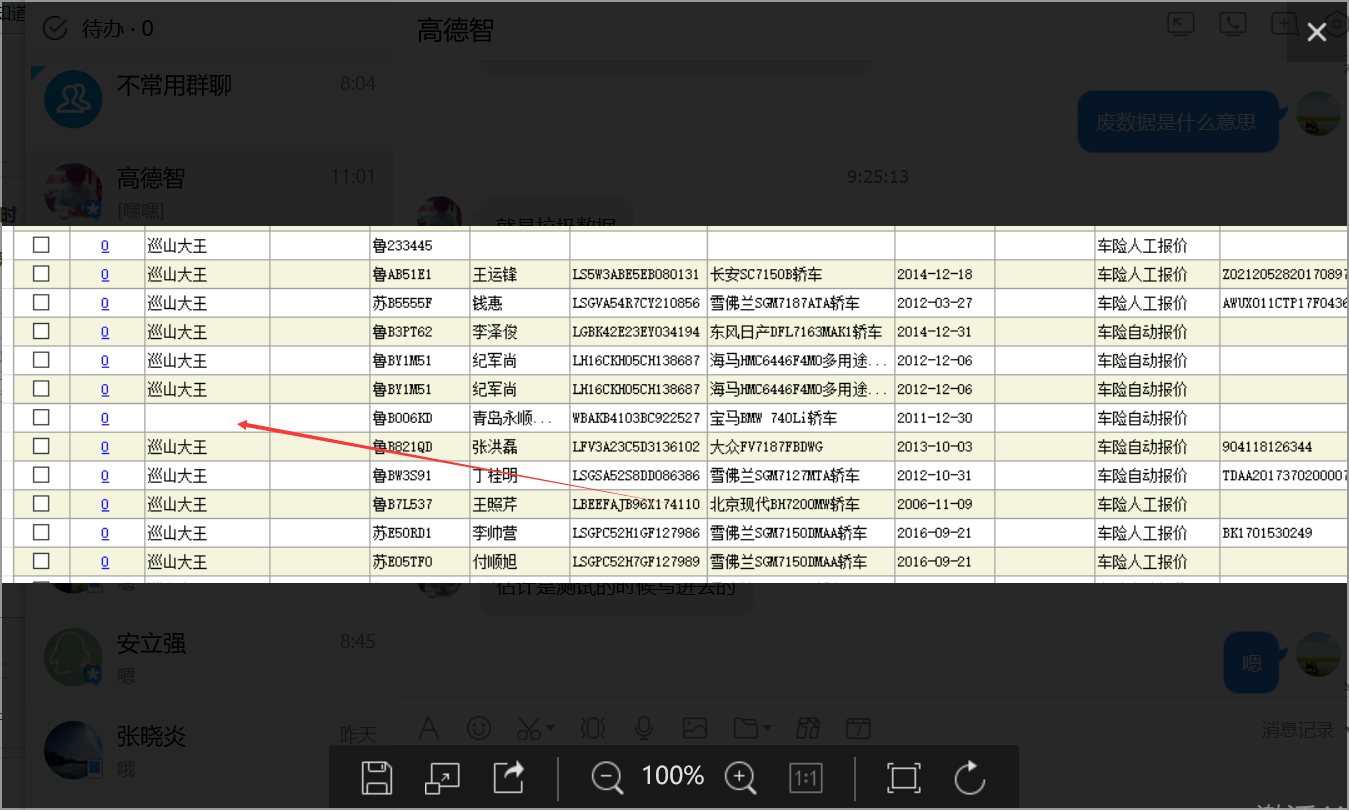 经开发排查发现,相差的三条:有一条数据没有绑定微信用户和非车险中两条已锁定的数据。统计接口是没有统计已锁定的数据的。未绑定微信用户的数据见图
