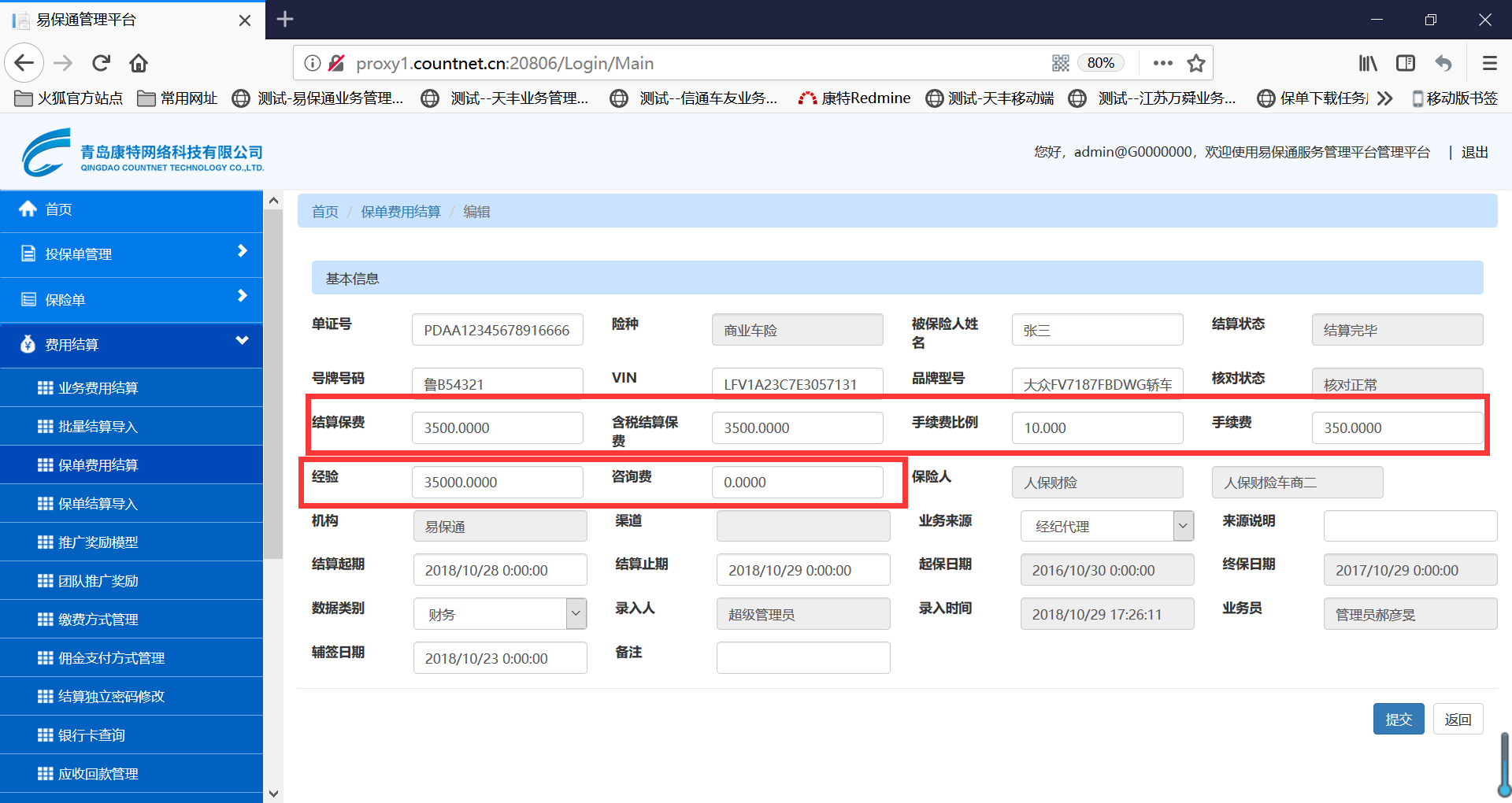 【速成高级版】保单费用结算,列表页和编辑页面的金额都只保留2位小数即可