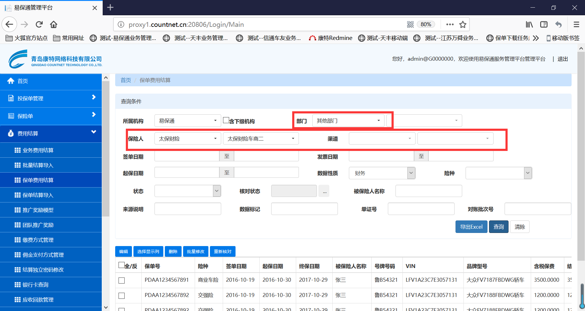部门选择其他部门,再按照保险人和渠道查询,无法筛选数据。在此基础上,其他查询条件也不好用