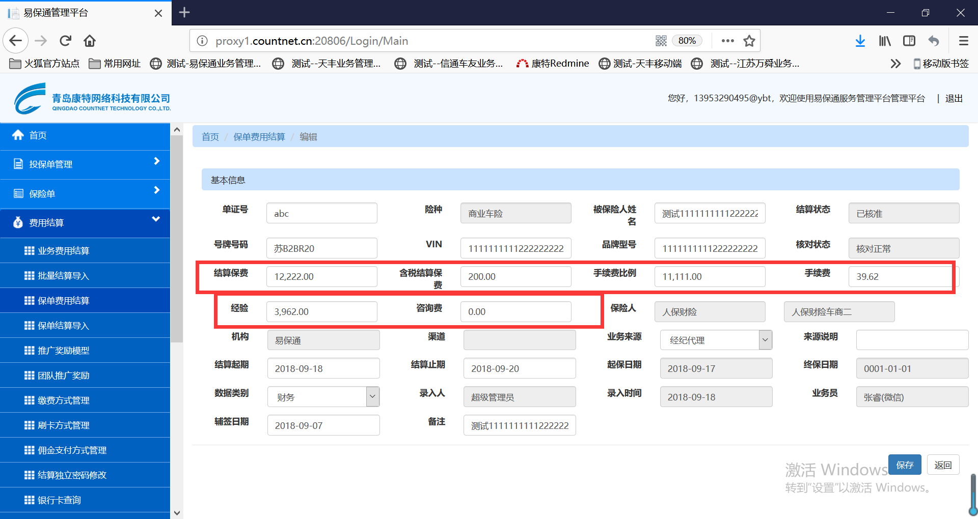 【速成高级版】保单费用结算,编辑页面个字段长度和格式没有做限制
