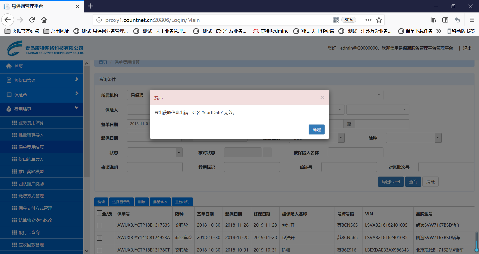 日期导出报错:选择签单日期、发票日期、起保日期这三种导出时都报错