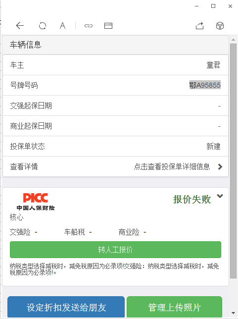 【捷顺】人保接口报价减税车时会提示需要录入减税原因。