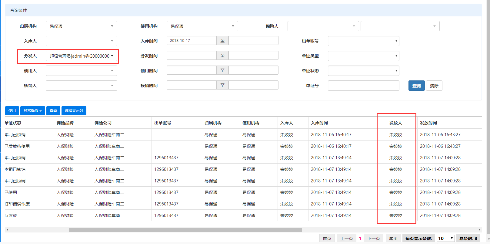 查询条件的分发人选择其他人仍然会查出数据。名字建议都改成分发人或者发放人