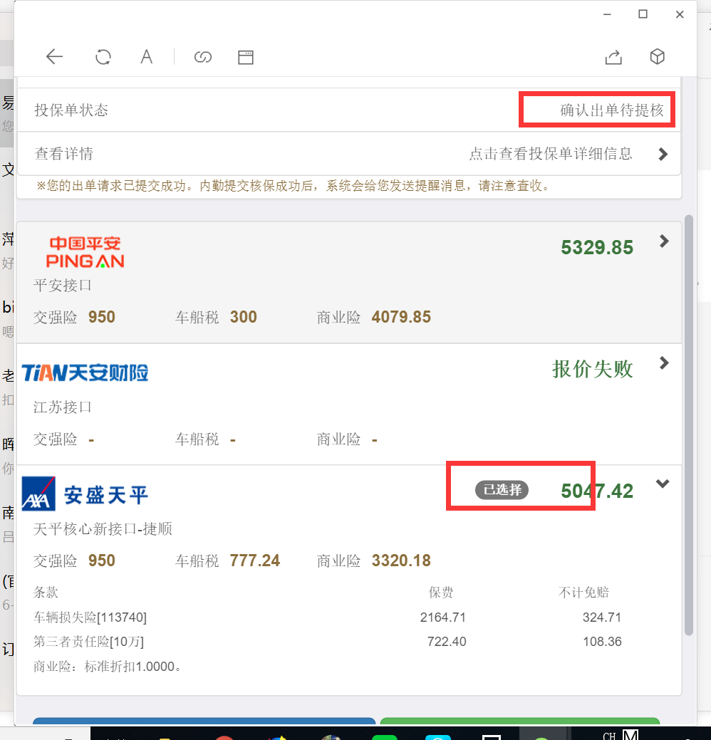 若有多个报价成功报价结果,需要标记出出单的是哪个报价。参考附图易保通效果,“已选择”标记的为确认出单的报价