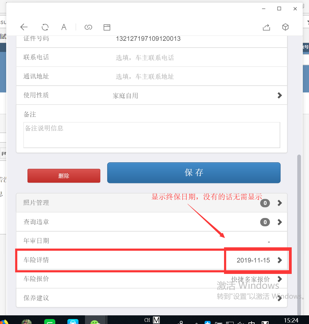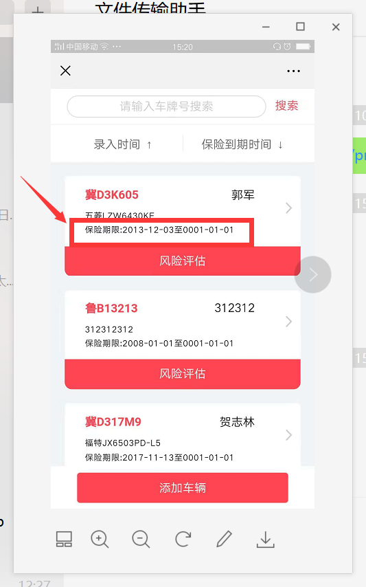 【信通车友】车辆管理,车辆列表中保险期限日期显示不正确